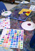 I saw this idea on Pinterest and decided to give my third grade students this challenge and they loved it. Here is the link where I saw the lesson: http://www.teachkidsart.net/mixing-100-colors/. Each student was given the primary colors plus white and asked to see how many colors they could come up with. At first it seemed impossible but once they took a look at the color wheel and were reminded that they could mix different shades of colors they were off and mixing up a ton of new colors. They really had a blast and learned a lot about color theory.